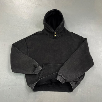 Boxy גרסה של סווטשירט כבד גברים עם קטיפה עבה נשטף גברים קפוצ 'ון